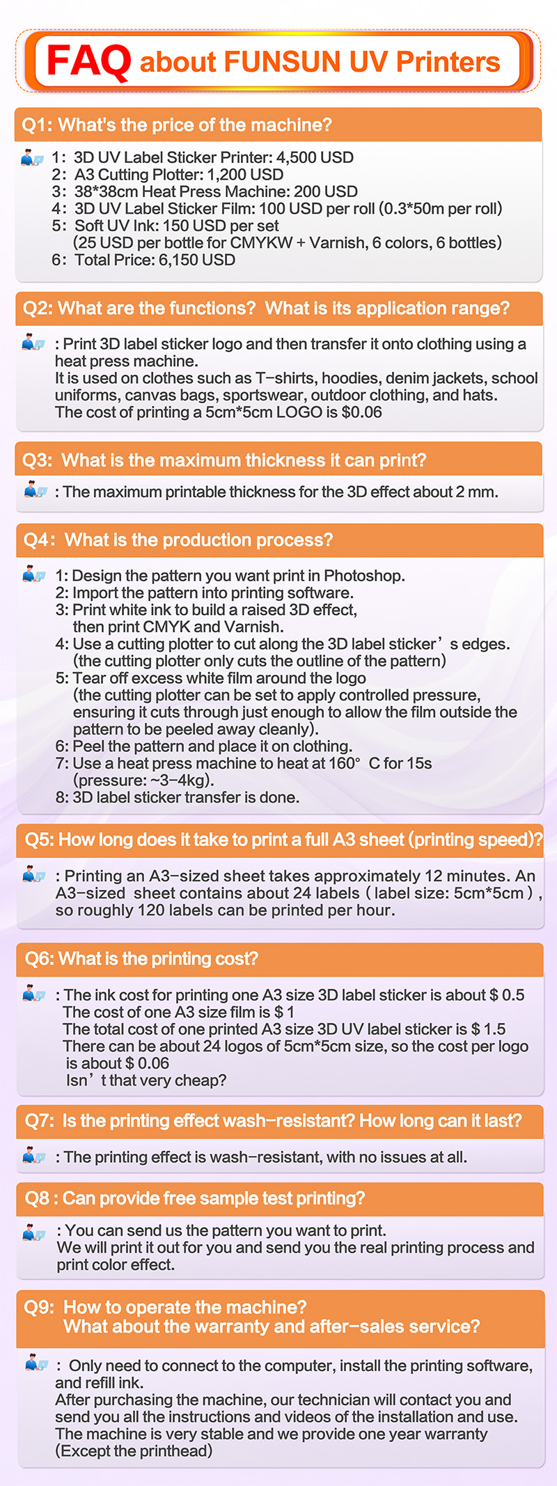 - Media type: T-shirts, hoodies, denim jackets, school uniforms, canvas bags, sportswear, outdoor clothing, and hats.