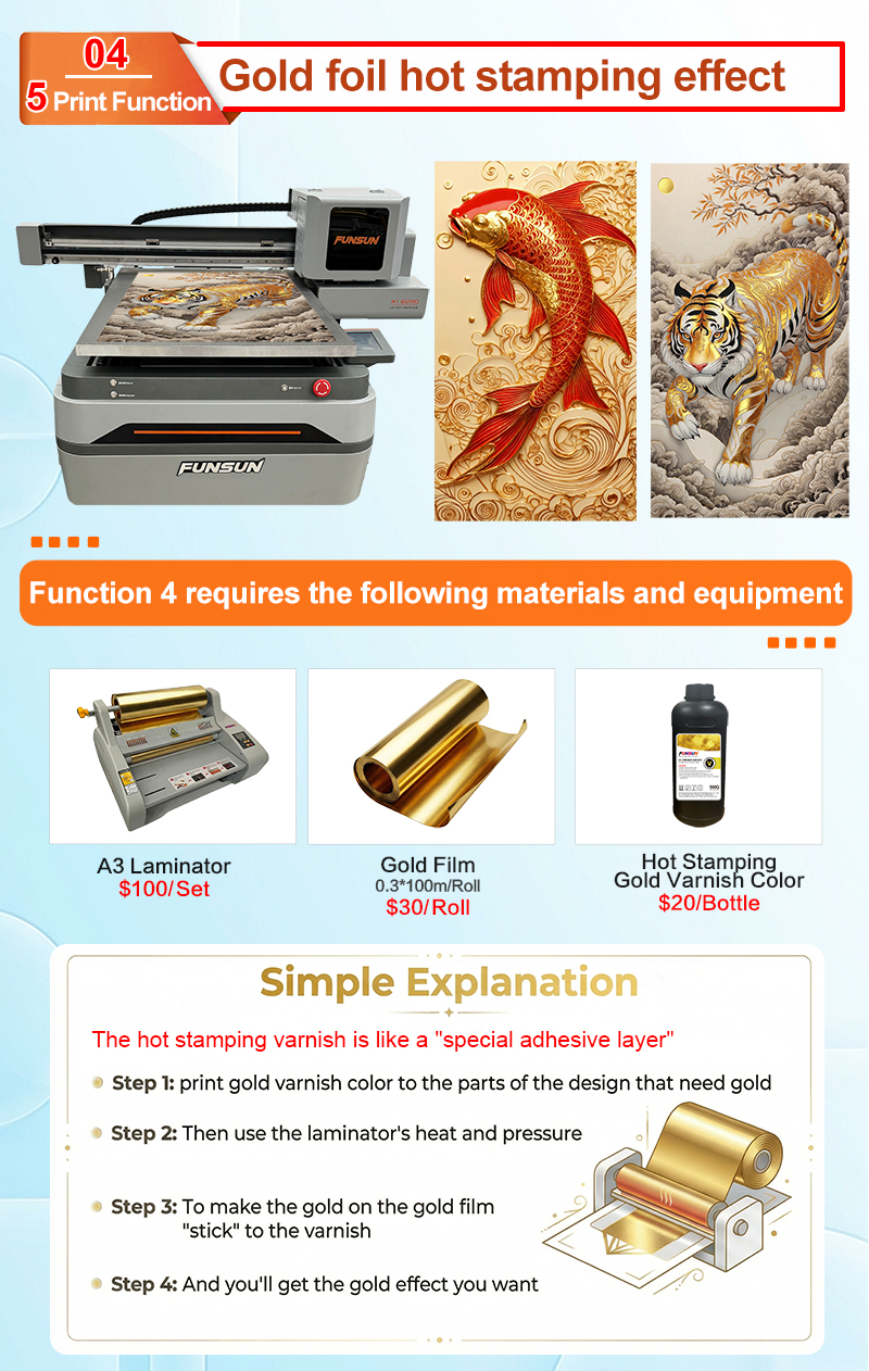 Function 4 : Gold Foil Hot stamping print effect