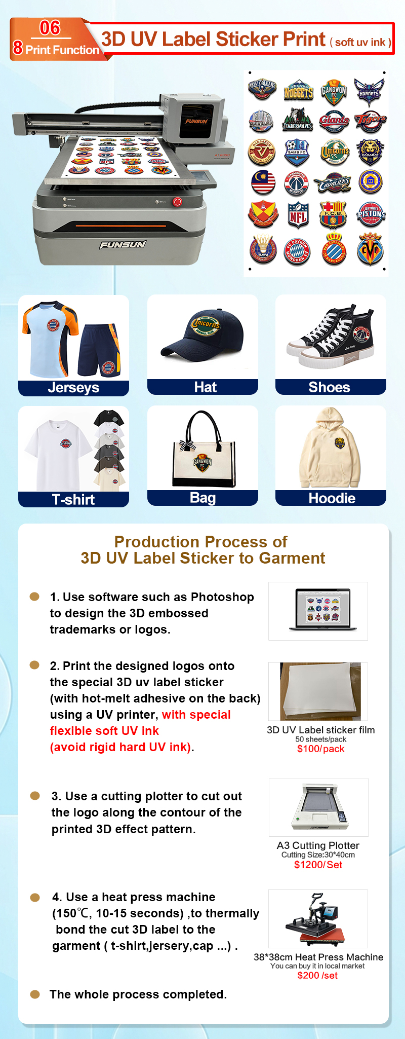 Function 6 : 3D Label Sticker for Jersey,T-shirt(Soft UV Ink)